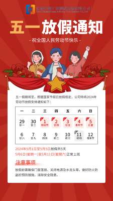 根据国家法定节假日安排及公司实际情况,现将2023年五一劳动节放假事宜通知如下:一、放假时间本次放假时间为2023年4月29日(星期六)至5月3日(星期三)放假调休,共5天。4月23日(星期日)、5月6日(星期六)上班。请各位员工提前做好工作安排,确保放假期间各项工作能够顺利交接。