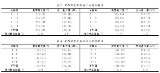 2、从检测結果能够看得出,同是95%氧化铝陶瓷,首批试件的3点和4点抗压强度抗压强度均显著高过第二批试件。