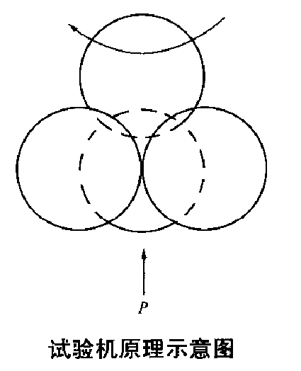 润滑脂抗磨测试机主轴转数不低于工200r/min,负荷不低于392N(40kgf),装好钢球的弹簧夹头装于摩擦磨损试验机主轴锥孔后,其钢球的径向圆跳动不应大于0.O15mm;经试验证明,精度能满足本方法要求的极压四球机亦可采用。试验机原理示意图见下图。