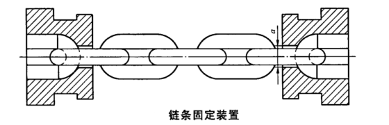 矿用圆环链破断力测试夹具与链环之间的接触表面应与链环实际承载时的接触面相吻合,破断力试验时链条的固定装置根据要求,插入销可由半个链环代替。