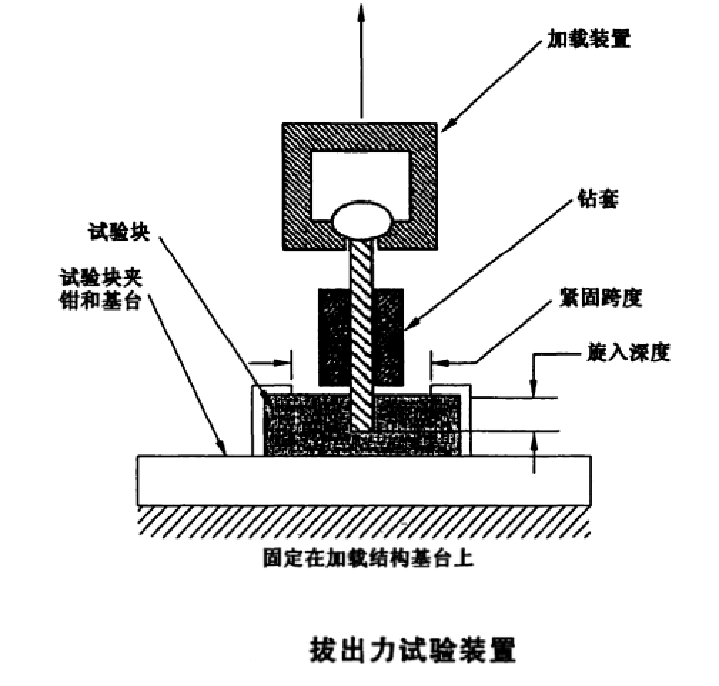 用于侧定螺钉轴向拔出力的装置应符合GB/T 16825。1的要求。试验装置应包含:用符合ASTM F 1839的材料制成的试验块及其夹具、钻套以及YY/T 1506中描述的钻套夹持工装。同时,试验块夹具与钻套夹持工装应具有足够大的刚度,从而可以忽略在所需载荷条件下的变形。试验块夹具的比较小紧固跨度应是螺钉直径的5倍,螺钉应位于紧固端的中心,在试验过程中夹持跨距应保持不变。
