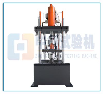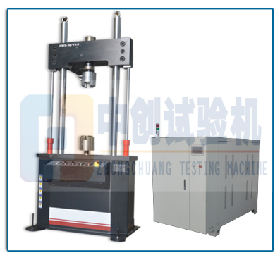 主机亦称负荷机架,是对试样进行加载的系统,通常由工作台(底座)、立柱或框架、横梁、作动器(油缸)和试样夹头卡具等组成,对于某些特殊的环境条件试验。如高温、低温、介质或真空下的试验,相应的环境辅助装置也置于主机内。主机所具有的加载能力往往是作为材料试验机一个系列中区分机型的主要依据,如长春机械科学研究院SD型,MTS810系列、Instron1340系列,其主要含义是主机的加载能力(静态)分别为±20吨、±5吨和±50吨。当然,不同的主机其机构特征(如立柱数目、试验空间、主机刚性等)有相应的变化,主机上均只有一个固定横梁。除了装卸试样时可移动外,实验时是固定不动的。因而不能对试样施加载荷而只能作为承载梁应用,加载能力和试验的进行完全由作动器来提供,除具有动态型机的功能外,还具有静态加载系统,主机一般有两个横梁(固定梁和可动梁)。固定横梁不对试验发生直接作用,可动横梁在静态工作时可受控移动。移动速度精确控制,并对试样提供施载能力;在动态工作时固定不动,相当于动态型机的固定横梁。